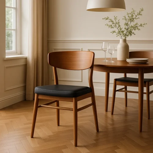 Explore our collection of wood dining chairs, crafted for comfort, durability and timeless appeal. Whether you prefer minimalist silhouettes, upholstered seats or classic armchair styles, each design complements your dining space with natural charm.