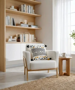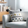 A row of black tribal-inspired embroidery gives this cover an artisan feel, making it perfect for bohemian, modern, or Scandinavian interiors. With soft fabric, corner tassels, and a hidden zipper closure, it’s as functional as it is stylish.
