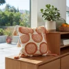 Boho pillow cover in soft white cotton with oversized terracotta pom-poms and corner tassels. Insert not included.