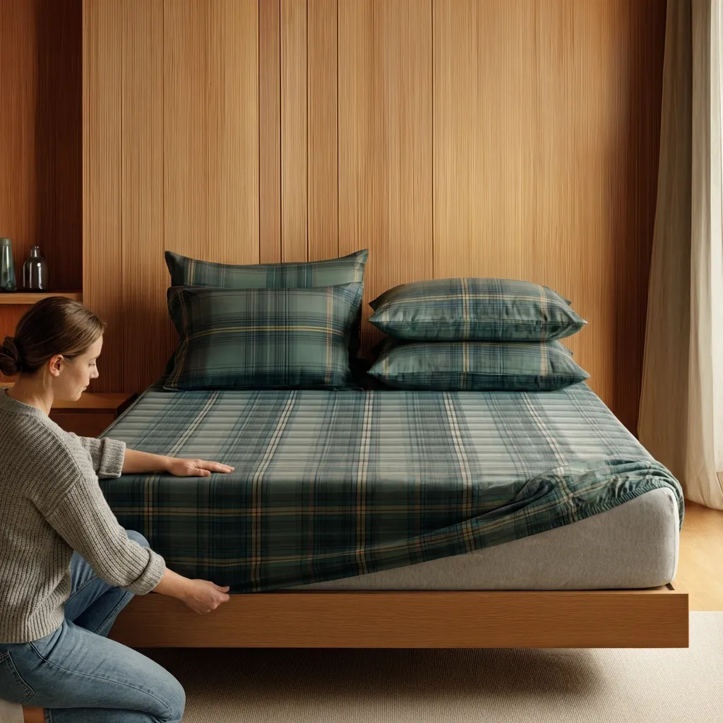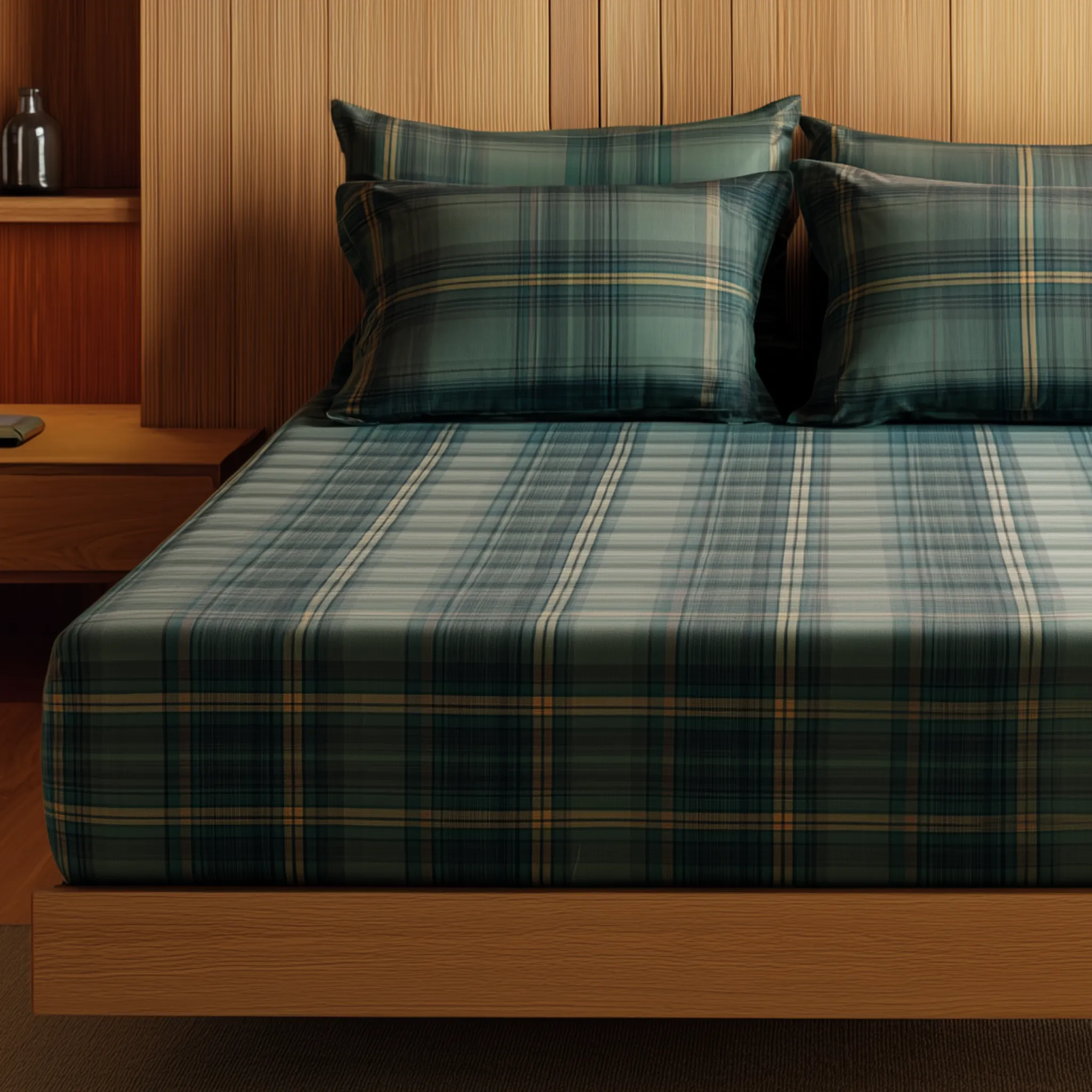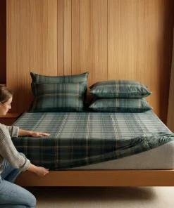 Elevate your bedroom style with this classic green and navy blue plaid flat sheet set. Featuring a timeless checkered design, this set combines cozy cabin vibes with modern sophistication—ideal for rustic, contemporary, or traditional interiors.