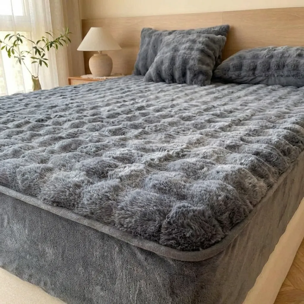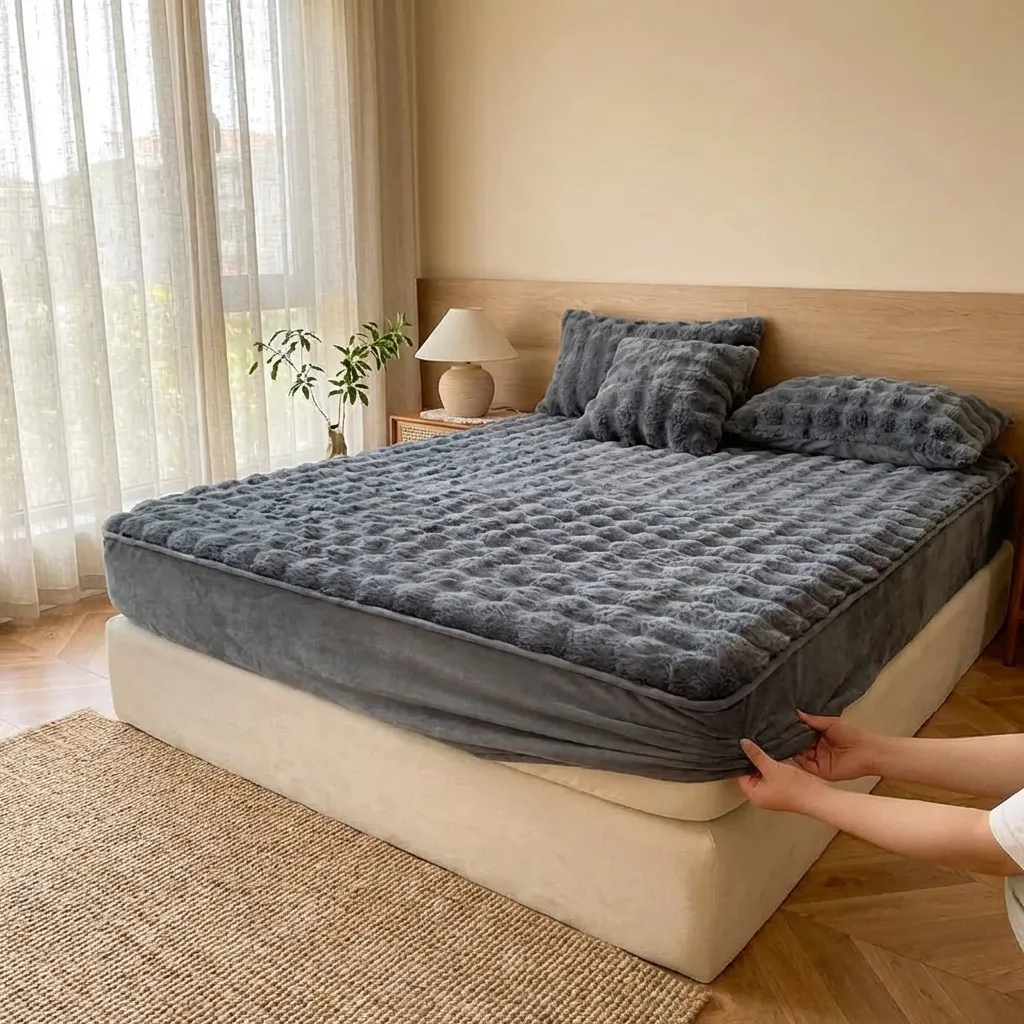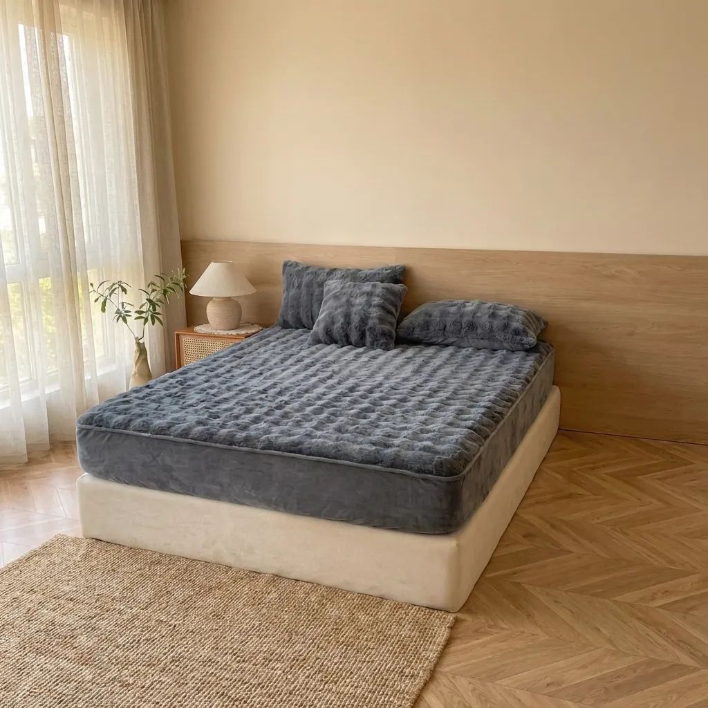 Add a touch of elegance and warmth to your bedroom with this dark gray elastic fitted bed sheet. Made from premium soft velvet fabric, it offers a plush, smooth surface that feels gentle against the skin. The stretchable elastic hem ensures a snug fit around mattresses from 10–25cm thick, preventing shifting and bunching.
