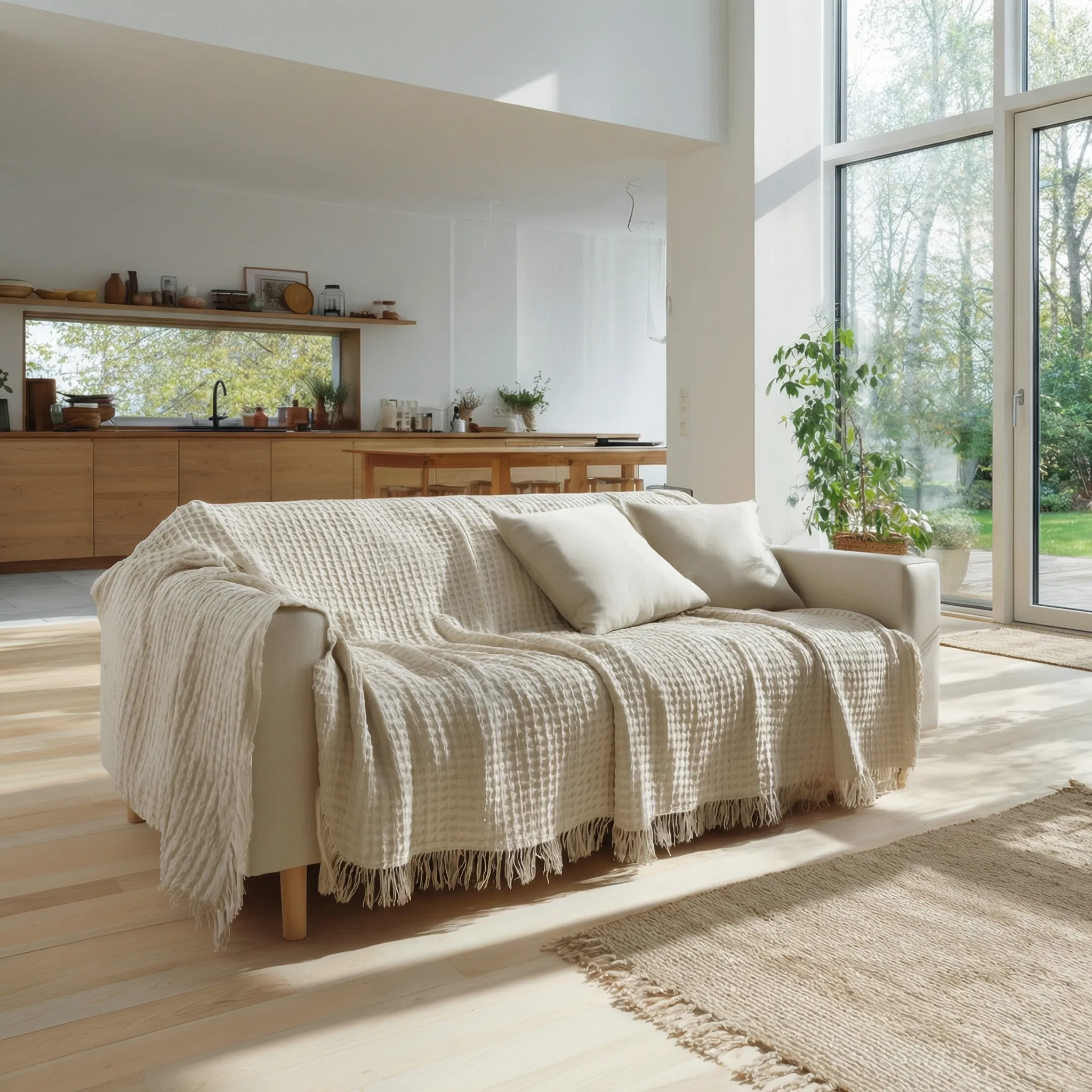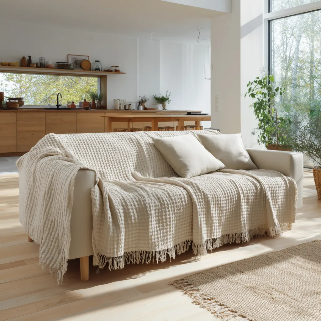 With a minimalist and clean appearance, these sofa blanket cover add a soft visual layer to living room seating. The draped style helps create a relaxed atmosphere that fits naturally within modern and neutral interior spaces.