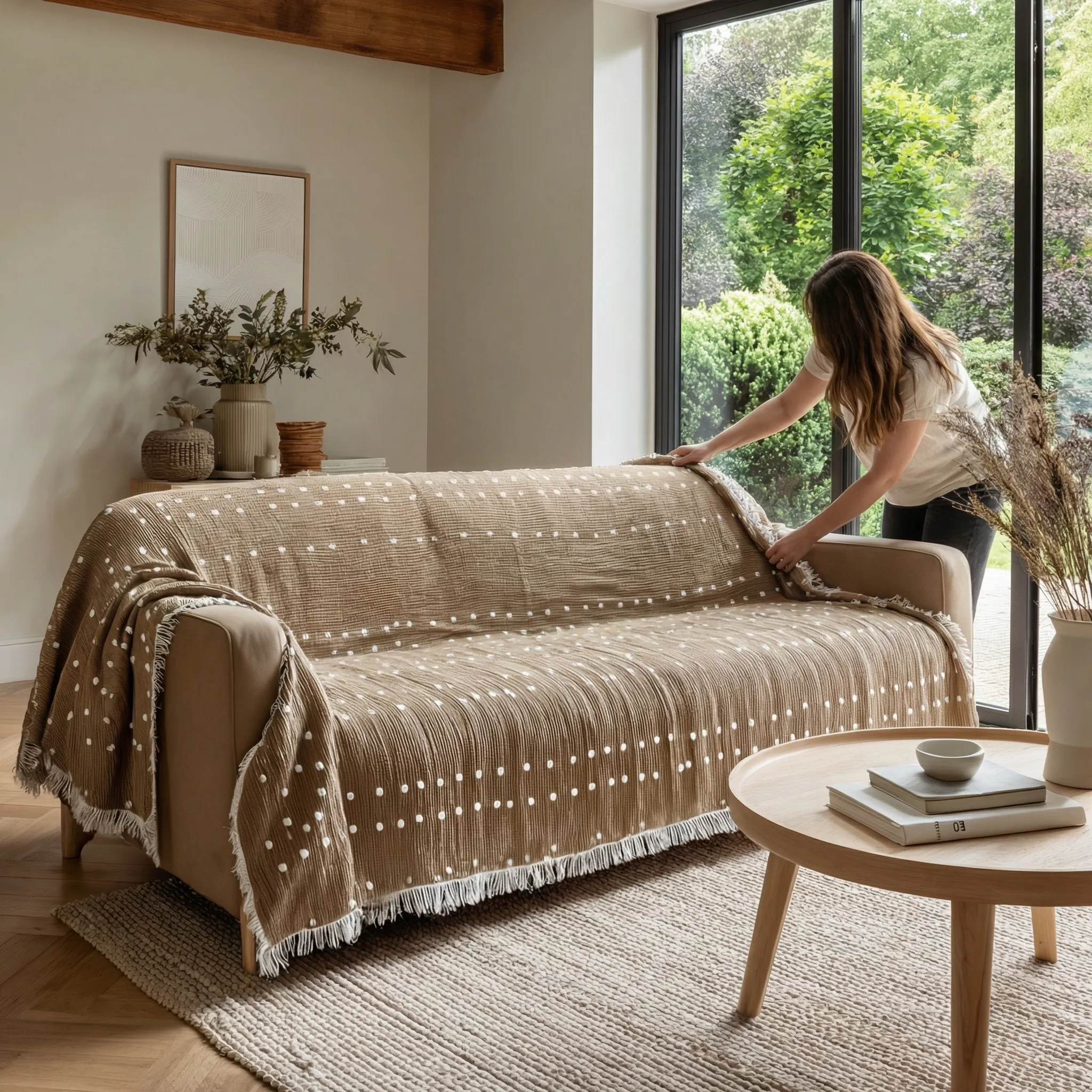 These minimalist sofa blanket cover are designed to drape naturally over sofas, adding a soft decorative layer suited for everyday living room use.
